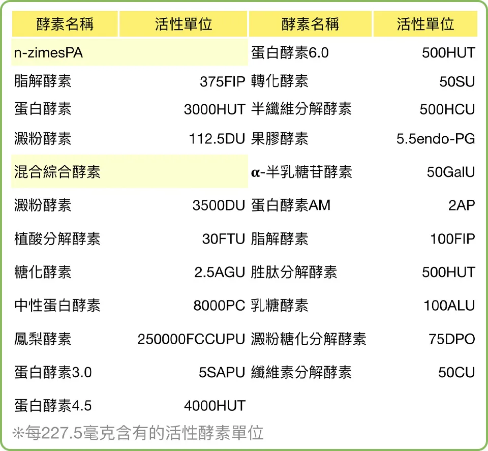 例如添加10種以上醣類分解酵素的產品,對蛋白質或脂質的消化就沒幫助,若有乳糖不耐問題的人,則可以找有添加乳糖酵素的產品。